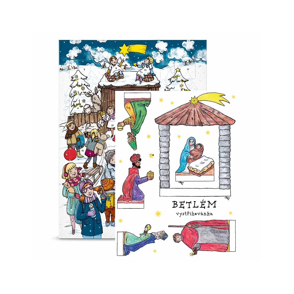 Jako bonus přibalíme ke kalendáři také ručně malovanou vystřihovánku betlému. Každá postava i chlév má spodní část připravenou k nalepení na podklad, abyste si betlém mohli skutečně postavit třeba k vánočnímu stromečku. Vytištěno na recyklovaném papíru.
