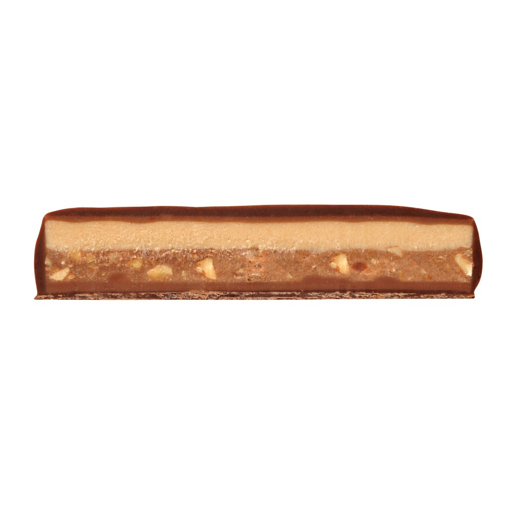 Sezónní fair trade tmavá mléčná bio čokoláda z horského mléka z tyrolských Alp a vysokého podílu kakaa (60 %), střídavě plněná vrstvami lehkého mandlového a tmavého lískooříškového nugátu (55 %). Ten je navíc rafinovaně doplněn křupavými kousky samotných lískových oříšků.